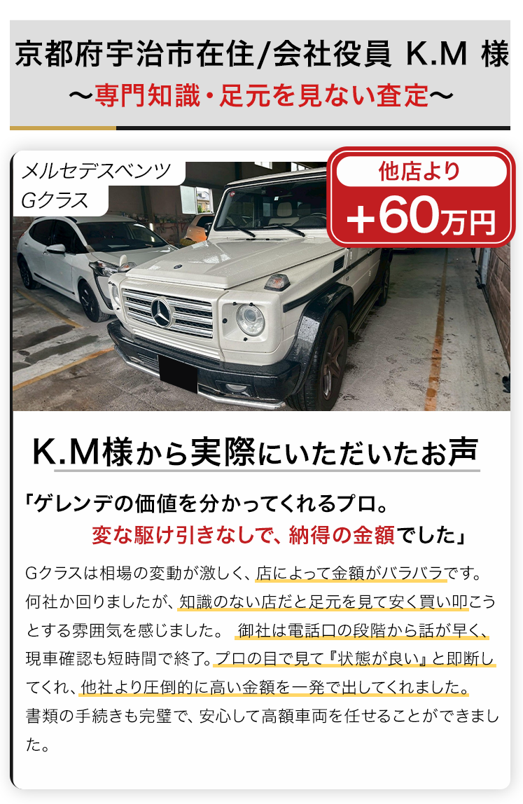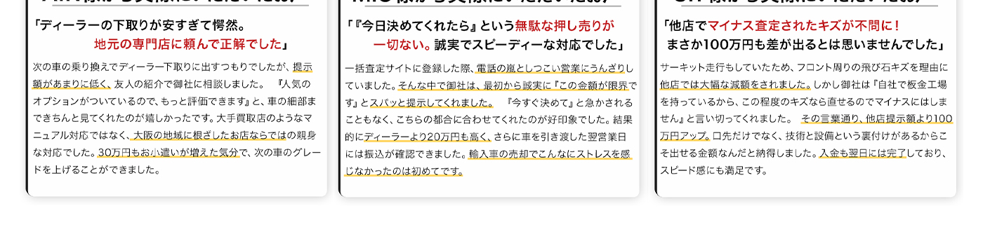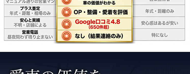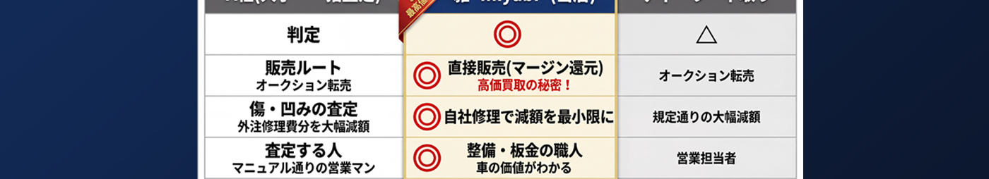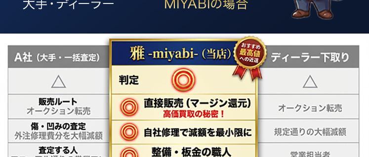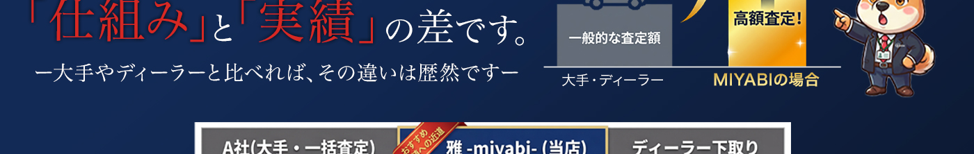 ディーラー下取りはあくまで「次の車を売るための価格」ですが、当社は「市場で最も高く売れる価格」を基準にしています。まずは比較材料として査定だけでも問題ありません。