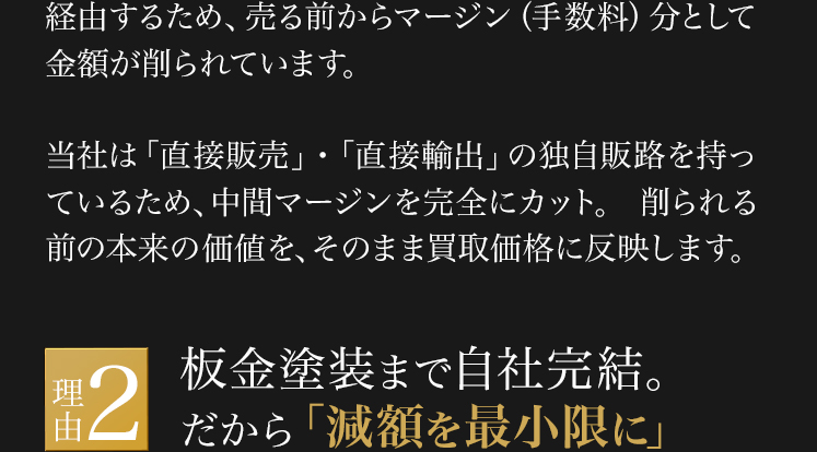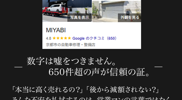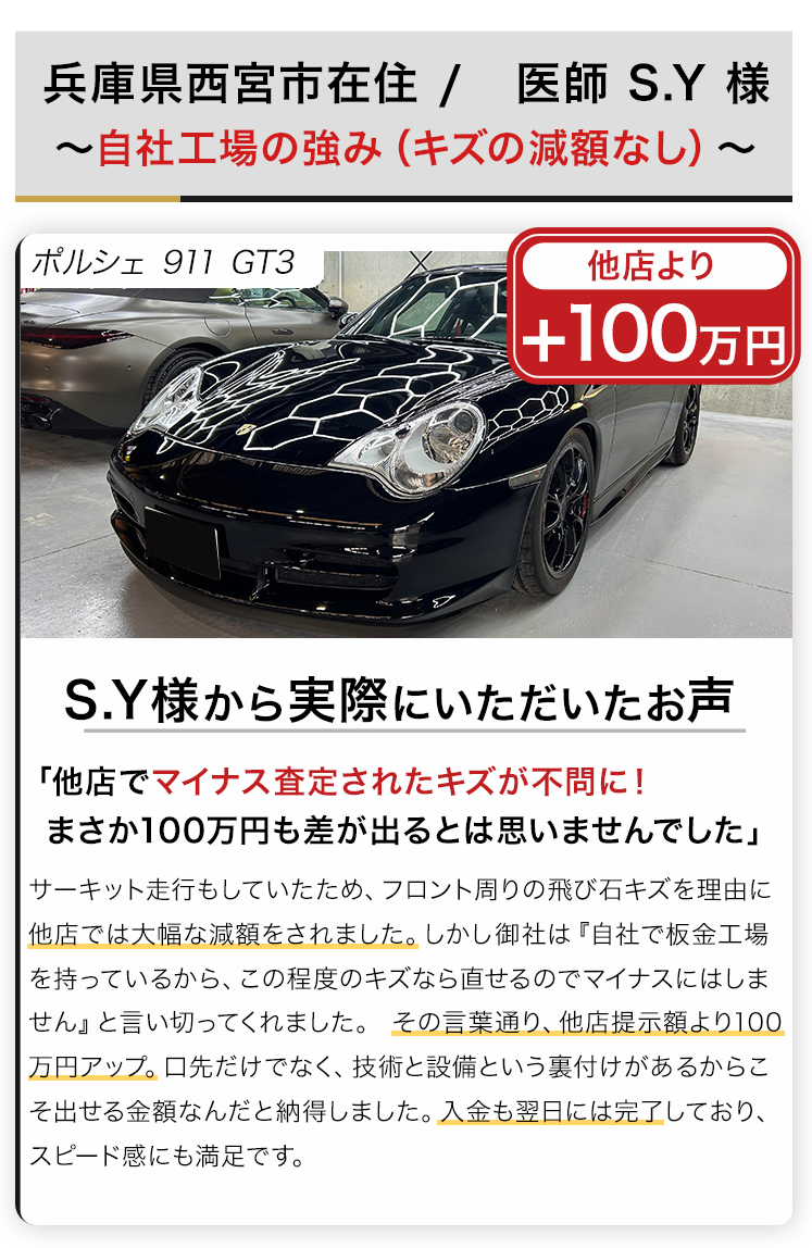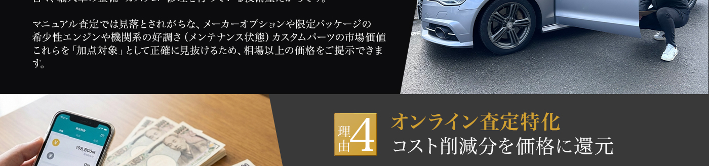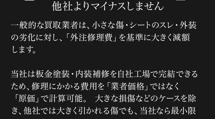 最初の査定時点で、キズ・修復歴・状態をしっかり確認し、「最終金額」としてご提示します。