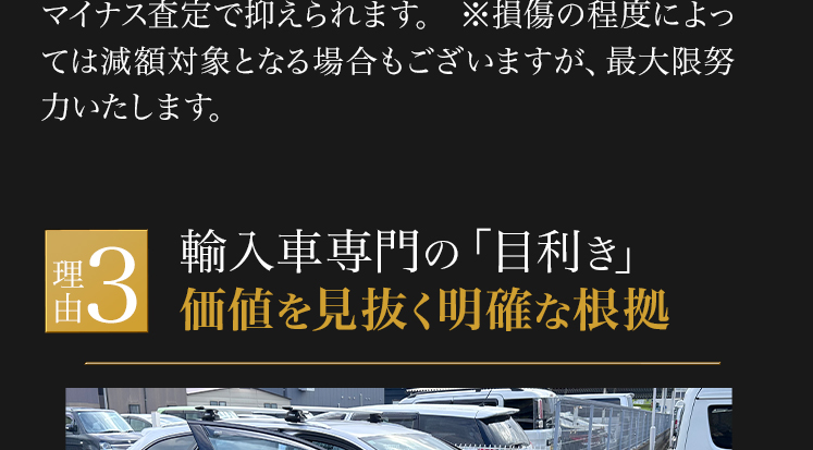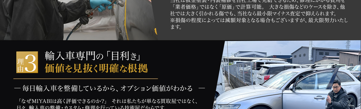 A.確かに輸入車は修理コストが高いですが、その分海外需要・部品価値・国内ニーズも加味して査定します。国産車のような「一律減点」ではありませんのでご安心ください。