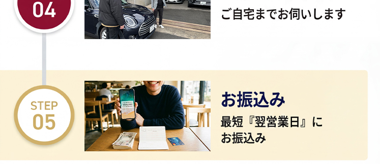 A.はい。条件が整えば即日現金払いも可能です。事前に整備証明・車検証などを用意しておくとスムーズです。